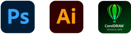 入稿データは、Adobe Illustrator、Photoshop、Corel DRAWでの完全データ入稿をお願いしております。